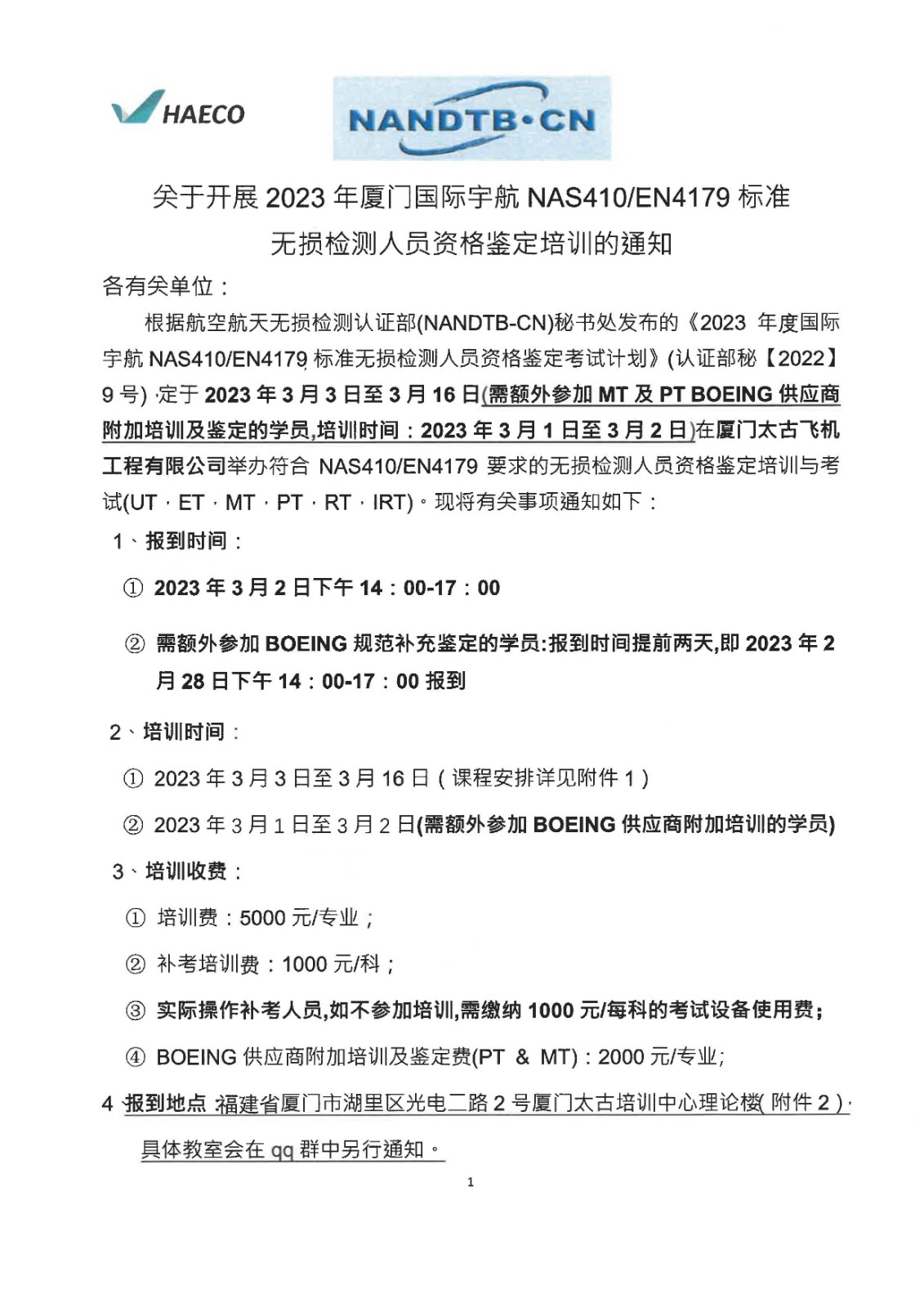 Training Notice for March 2023 (Xiamen Taikoo)