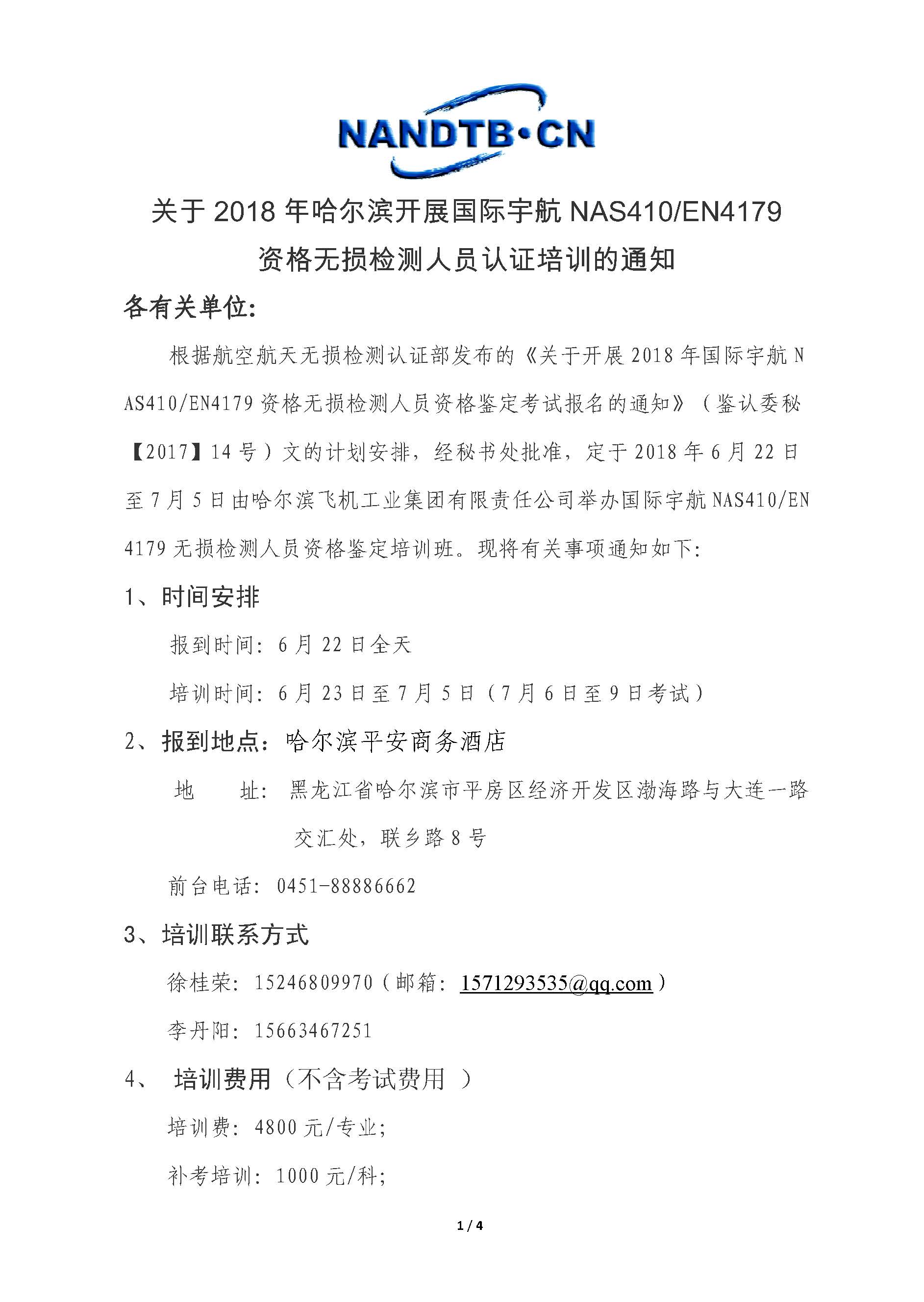 2018年7月哈尔滨NAS410/EN4179培训通知