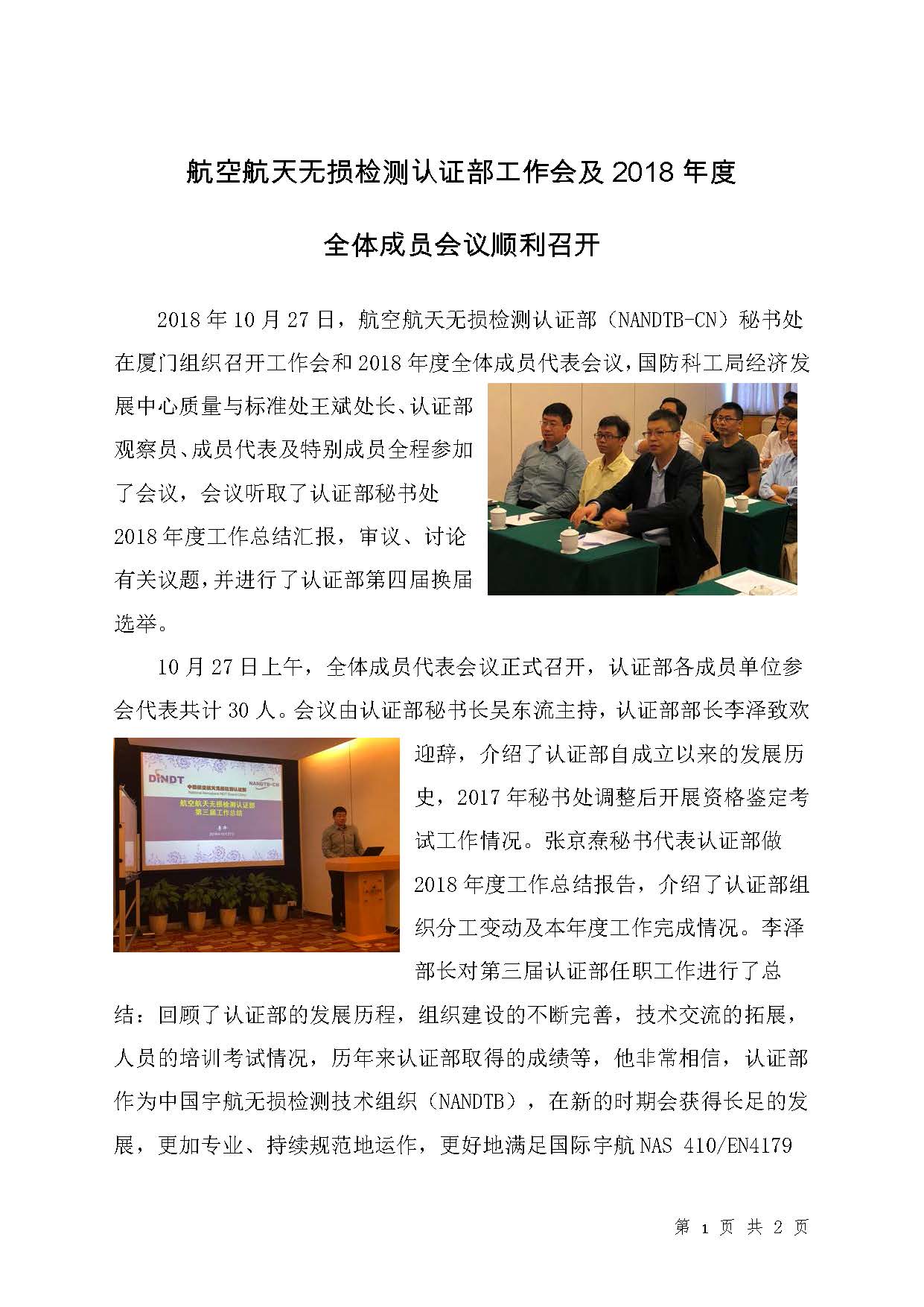 航空航天无损检测认证部工作会及2018年度全体成员会议顺利召开
