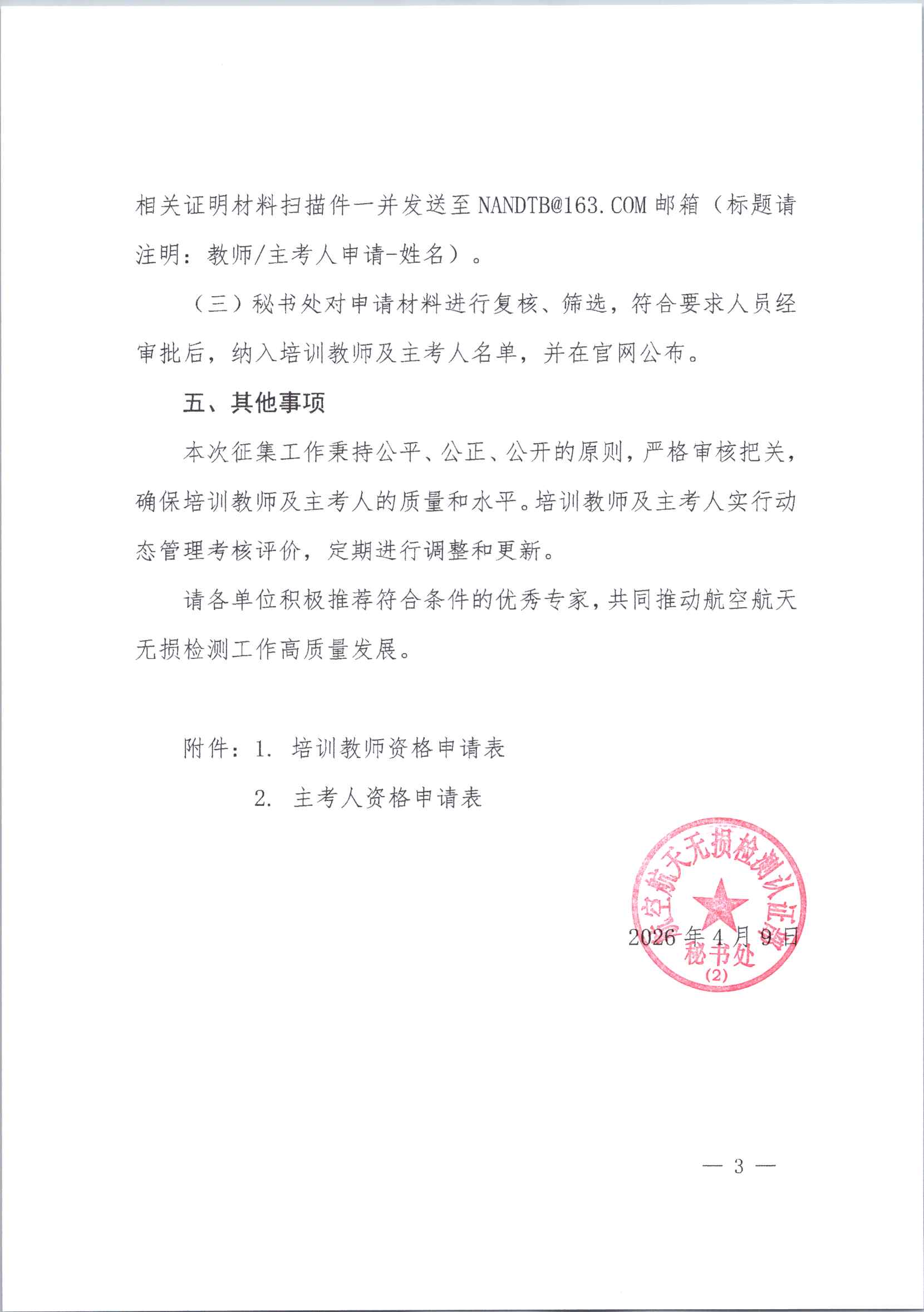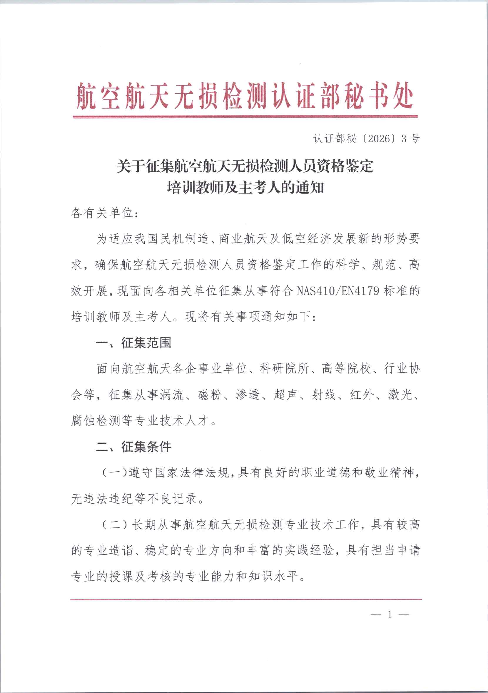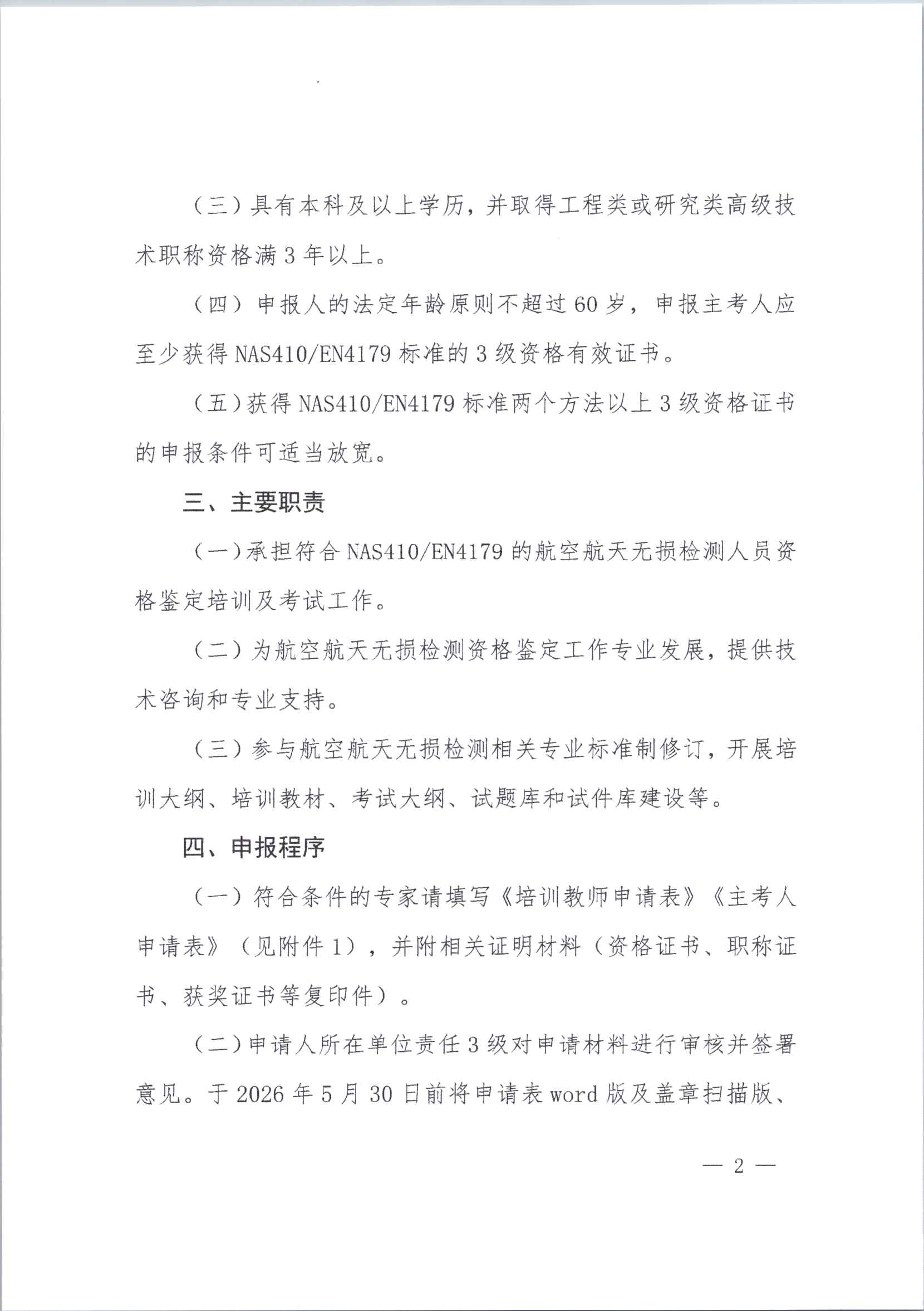 关于征集航空航天无损检测人员资格鉴定培训教师及主考人的通知.pdf
